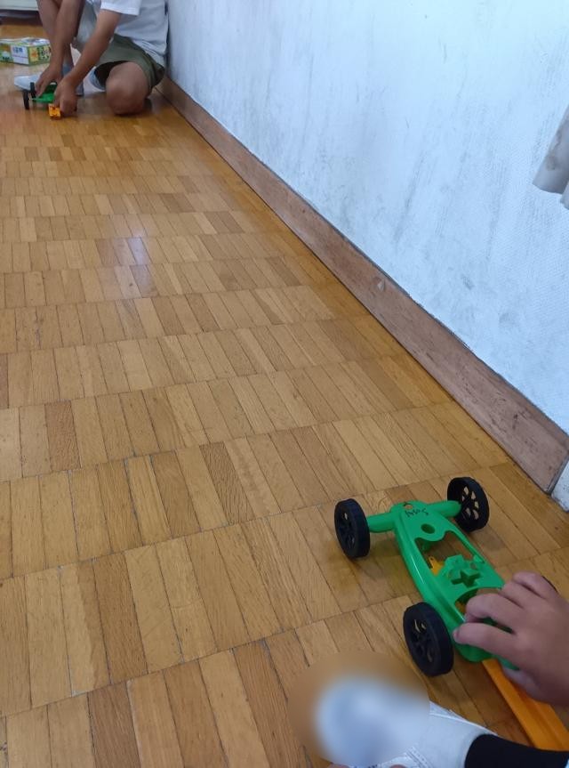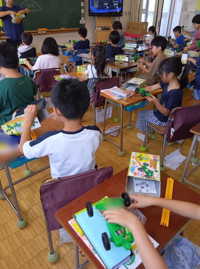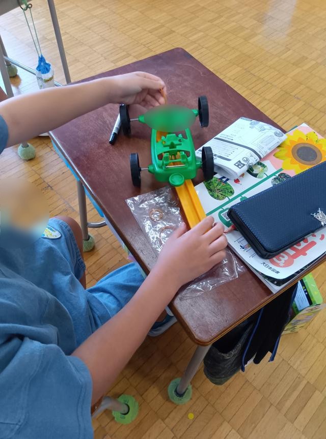 初めに「楽しいやつ」と書いたとおり、この手の実験は楽しくて、「終わり」の合図があってもなかなかやめられないということも起こりがちですが、終わり、そして片付けの指示が出ると、みんなさっと実験をやめて箱に車をしまっていました。けじめがしっかりしていて素晴らしいと思いました。