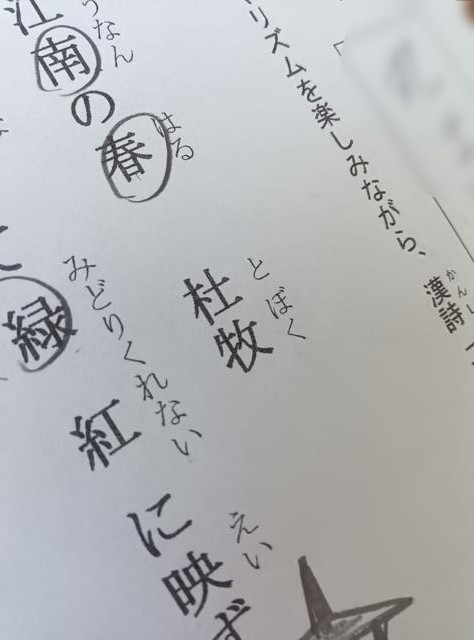 3年生の日本語です。杜牧の「江南の春」の学習をしていました。
