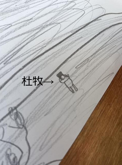 あ!「ぼくとぼく(僕、杜牧)」・・・だめか。ん?・・・「ぼくとくぼ(僕と久保)」ならいけるんですね。ってことは・・・「とぼくとくぼと(杜牧と久保と)」キタ!