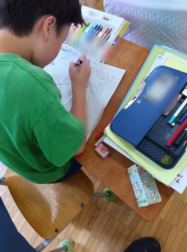 最後の写真は、休み時間になって手を洗いに行った2人が、偶然同じハンカチを持っていたのに気が付いたときの写真です。どうやら限定もののようでお互いにビックリしていました。小学校あるあるです。