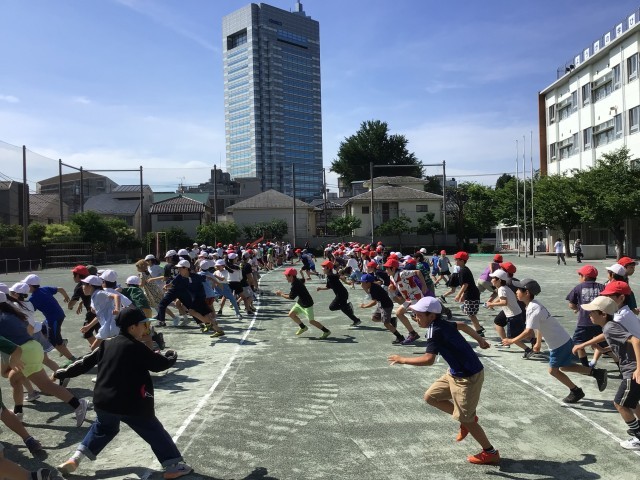 運動委員の児童が、「ね〜ね〜ね〜ね〜、ねこ!」と言ったら、「ねこ」が鬼になりねずみを追いかけます。