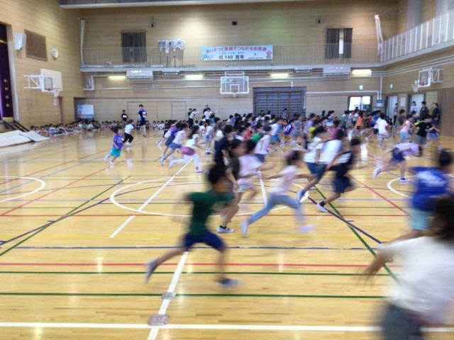 さて、今日の朝の時間は運動委員会による運動集会でした。