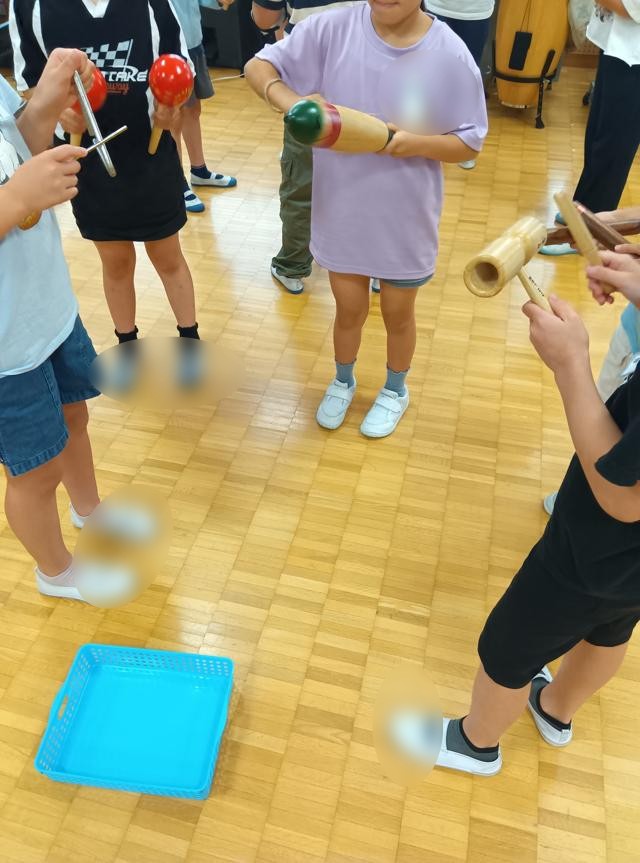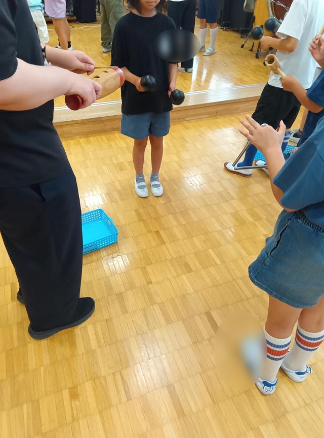 4年生の音楽です。打楽器系の陽気なリズムが音楽室から聞こえてきました。
