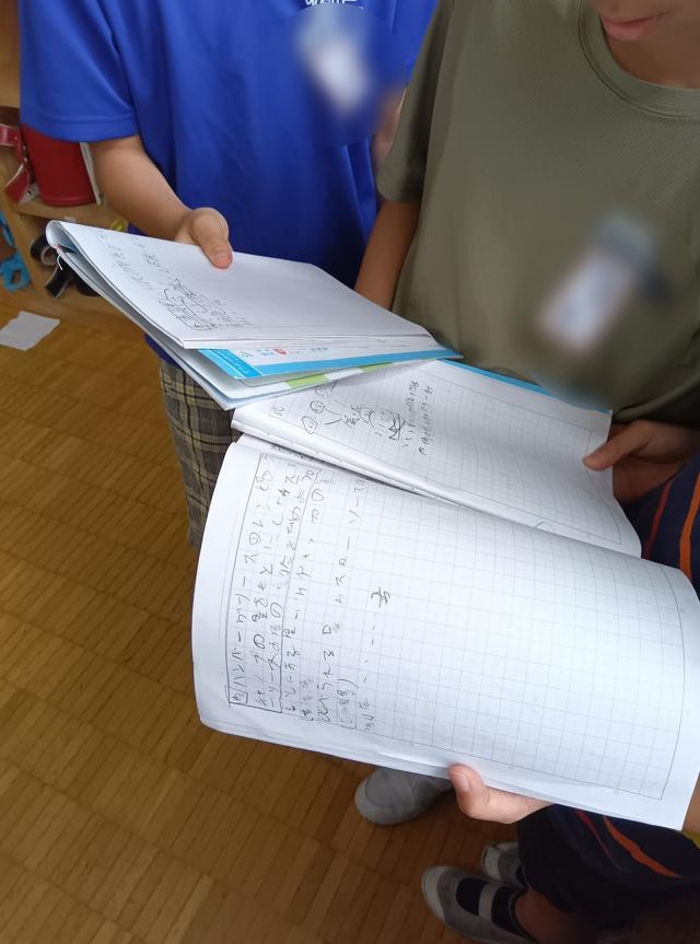この単元では、言葉で説明する場面もよく見かけます。友達とノートを突き合わせ、互いの考えを共有しています。思考をまとめるのにも大事な活動です。