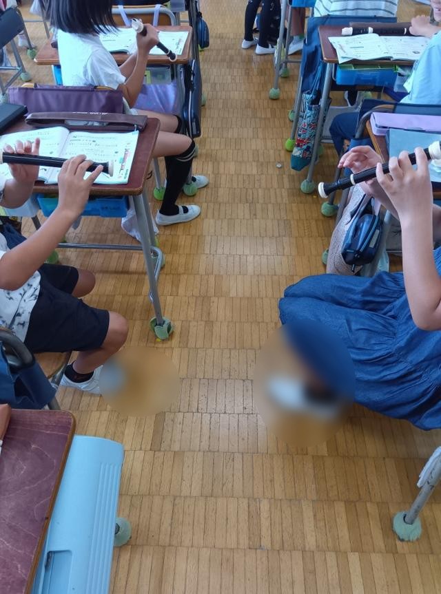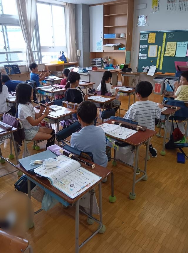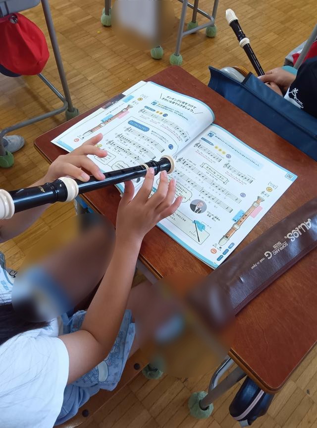 6月の後半くらいから始まった3年生のリコーダーの学習をまだ御紹介できていませんでした。この日は「シ」と「ラ」の二音を使った曲を練習していました。