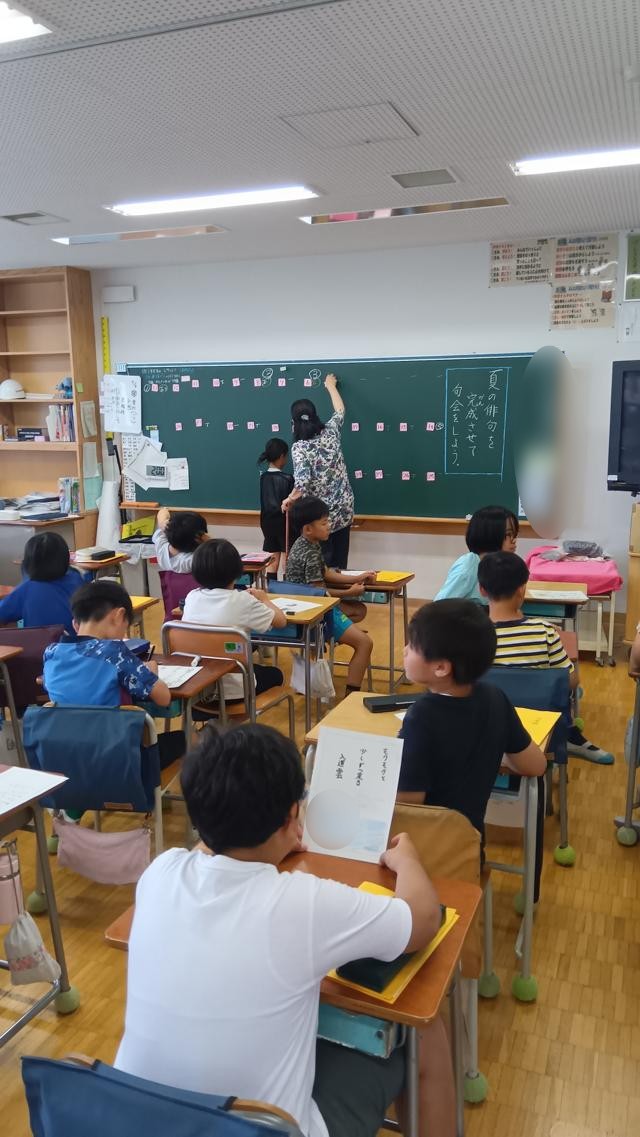 夏の楽しみ、夏の憂い、夏の風物詩・・・子どもたちが伸び伸びと詠んだ俳句が、できたものから黒板に貼られていきました。夏の暑さを憂える句もたくさんありました。確かに、最近は、