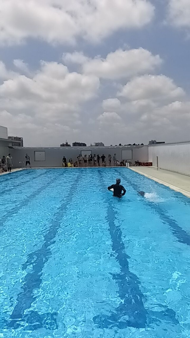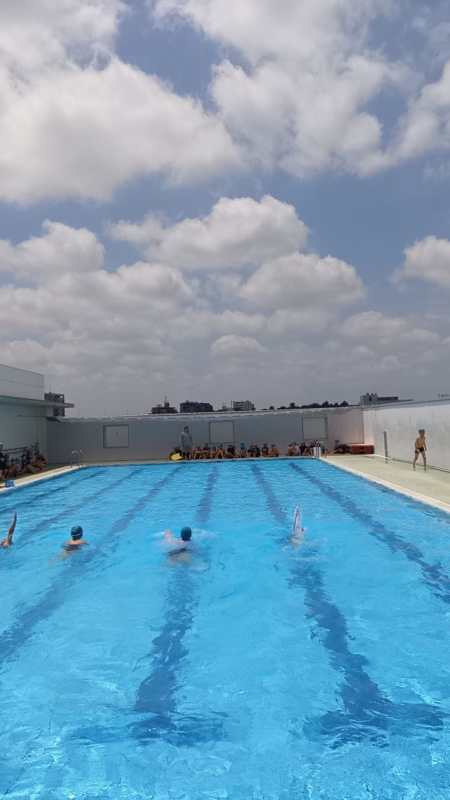 句会は金曜日のことですが、この日午前中には4年生はプールに入っていました。ほどよく雲もあり、気持ちの良い状態で入ることができていました。後半には検定を行っていました。検定や級別の練習などで分かれて集まるとき、昨年設置された西側の日よけが役に立ちます。