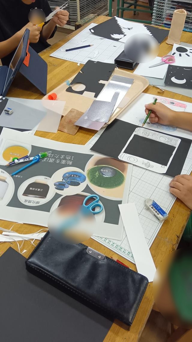 6年生の図工です。先日もお伝えした「モノクロワールド」を進めつつ、乾燥を終えた「暮らしをいろどる形」の次の作業を順に行っていました。「釉薬(ゆうやく)」をかける作業です。これは一度にはできないので、個々の「モノクロワールド」の作業を行いつつ順番が来るのを待ちます。その間に、サンプルのプリントを見ながらどんな色の釉を塗るかを考えていました。