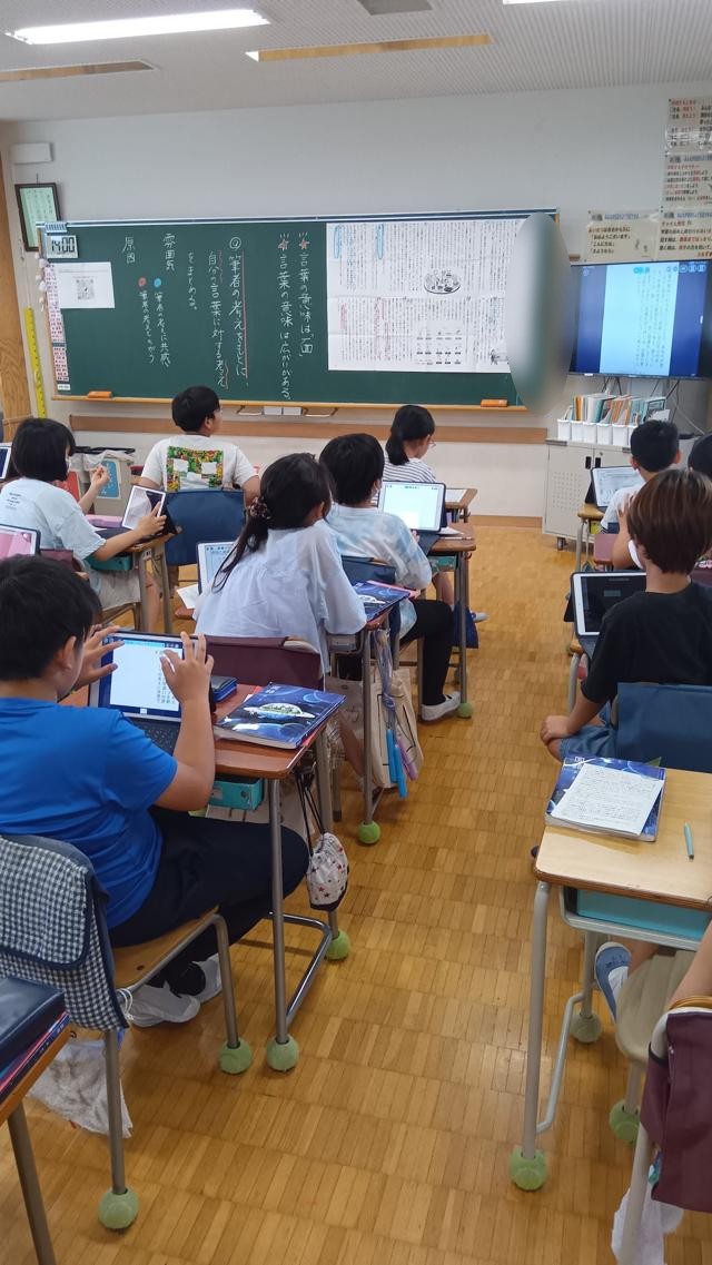 「言葉の意味は面。」「言葉の意味は広がりがある。」と黒板に書かれています。