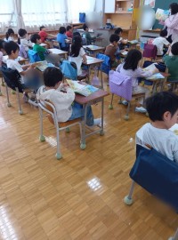 1年生の教室では、国語の教科書を開いて学習をしていました。まずは、どんなことが載...