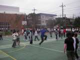 10月の体育朝会は、長縄です。第二校庭では4年生、5年生、6年生がクラスごとに...