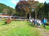 村めぐりの始まりです。めざせ りんご園。