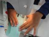 ミシンの使い方を学習し、クッションの制作が始まりました。手順を確認しながら、丁寧...