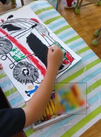 4年生の図工「いろいろ絵の具研究所」です。4年生から始まった専科教員による図工室...
