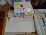 ふでで絵の具をぬることを楽しみながら「えのぐじま」を想像して絵に表しました。細い...