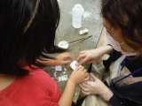 午後は、1,3,4年生がサンドブラストを体験しました。砂でコップをけずる作業にド...