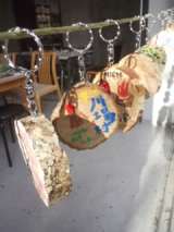キーホルダー作りです。まず木を切ります。白樺、ヒノキ、ハウチワカエデなどの木を使...