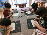 4年生 図工 彫刻刀の練習中