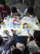 カレーができました。できたー、達成感あるなあ、と子供たちは言ってます。味はどうな...