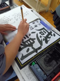 6年生の書写の授業です。毛筆で、感謝の2文字を書いていました。いろいろな「ありが...