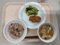 今日の給食赤飯牛乳鶏のから揚げえだまめサラダのっぺい汁産地情報しょうが 高知キャ...