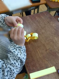 6年生を送る準備、そして4月に1年生を迎える準備が進んでいます。1年生は輪飾りを...