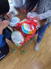 木曜日に2年生がメダルを作っていました。金曜日の朝、そのメダルを6年生に渡しに行...