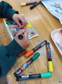 6年生の図工、少し前に作り始めてデザインをしているあたりを紹介したランプシェード...