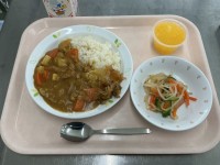 ◆献立◆チキンカレーライス福神漬こんにゃくサラダフルーツゼリー牛乳