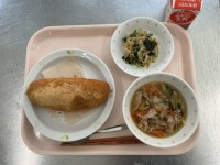 🔹献立🔹・揚げパン(きなこ)・春雨スープ・じゃこサラダ・牛乳