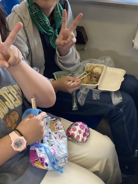 SLに乗りながらのランチタイムです。みんな美味しそうに食べています。ご準備ありがとうございました。