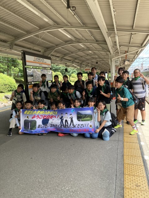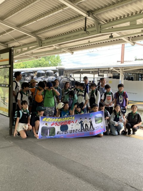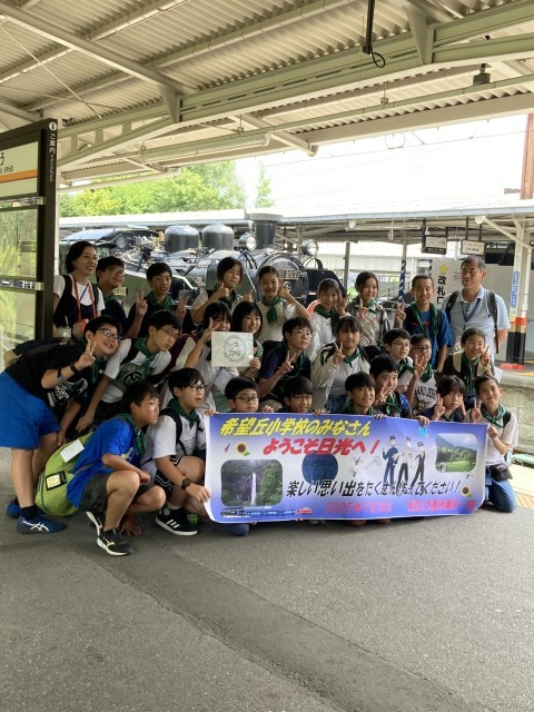 東武日光駅に到着しました。お腹いっぱいになったところで記念撮影。車中や駅では、あたたかい歓迎を受けました。