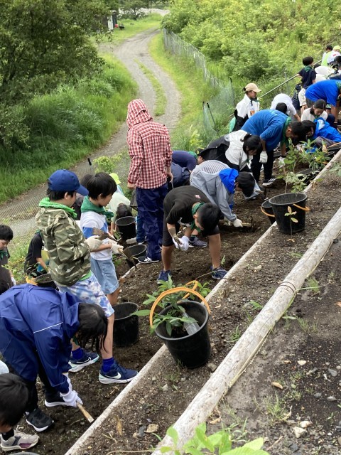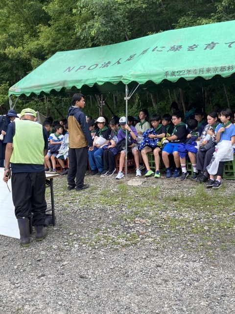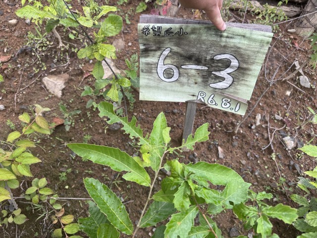 足尾銅山にて植樹体験。にわか雨が心配されましたが、無事植えることができました。一生懸命、植えるための穴を掘っていました。去年植えた先輩たちの苗木も大きくなっていました!
