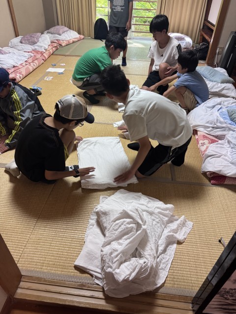 部屋の掃除が始まりました。協力して取り組んだので早く終わった班もありました。閉室式は時間どおりに始められそうです!