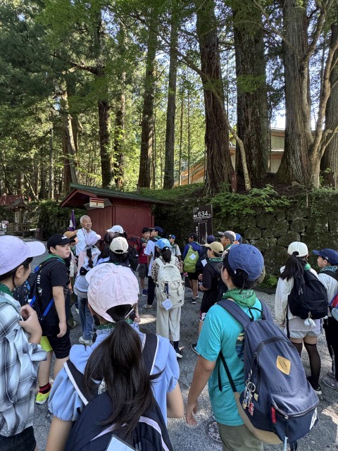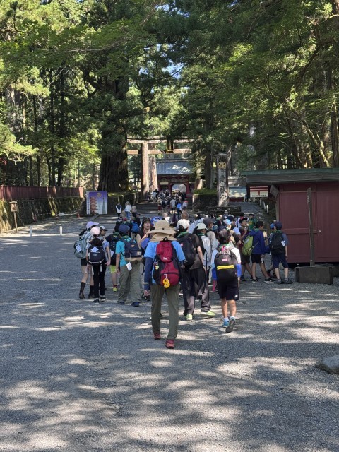 日光東照宮近くの駐車場に着き、ガイドさんと合流しました。ここからはクラスごとにガイドさんから説明を聞きながら輪王寺、東照宮を見学していきます。