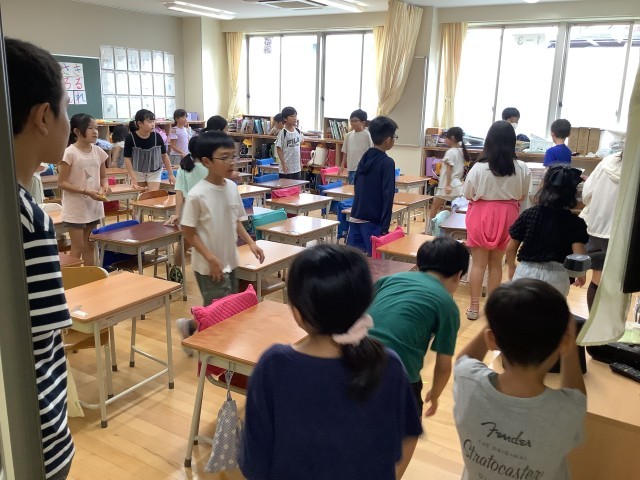 2学期最初の希望っ子班活動がありました。まだまだ暑いので、教室と体育館で室内遊びをしました。宝探しやハンカチ落とし、爆弾ゲームなど6年生の考えた遊びを、どの班も楽しそうにしていました。