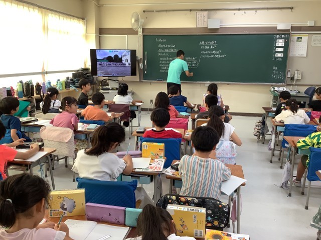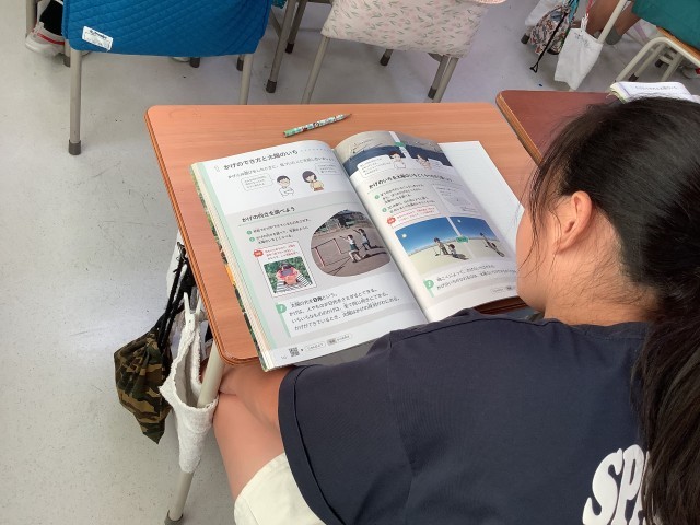 3年生の理科の学習では、太陽とかげの位置の関係を調べています。今日は、かげの位置を観察する方法を考えました。「太陽をそのまま見てはいけないよ」「棒を立てるといいかな」「方位も知りたい」などみんなで話し合い、最後は教科書で手順を確かめました。今日は晴れているので、実際に調べられそうです。