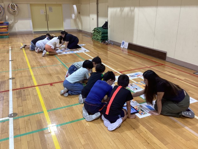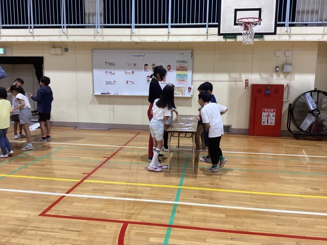 4年生が英語体験活動を行いました。飛行機内や病院、プログラミングをするシチュエーションで、いろいろなフレーズを使ってコミュニケーションを楽しみました。たくさんの先生と楽しく活動しました。