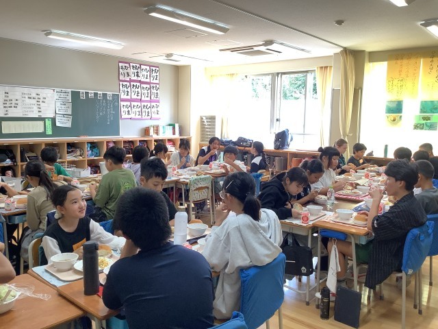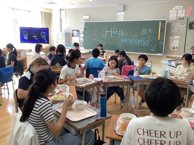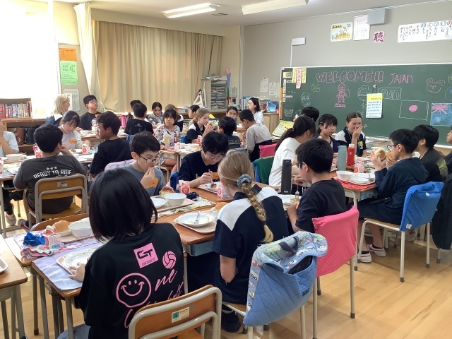 授業の後に一緒に給食を食べました。すっかり仲良くなって、どのクラスも楽しそうに食べていました。バンバリーの皆さんが、日本の小学校の給食を楽しんでくれたら嬉しいです。