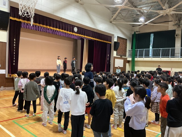 前回の時間を守ろう週間に続き、言葉に関しての企画を代表委員が考えました。お互いが気持ちよく学校生活を送れるように「ふわふわ言葉」を使ってみようという企画です。まずは各学年が考えるふわふわ言葉は何かを調査するために、模造紙を使って集めることになりました。この活動を通して、一人でも多く言葉づかいに気を付けることができる希望っ子になるといいなと思います。