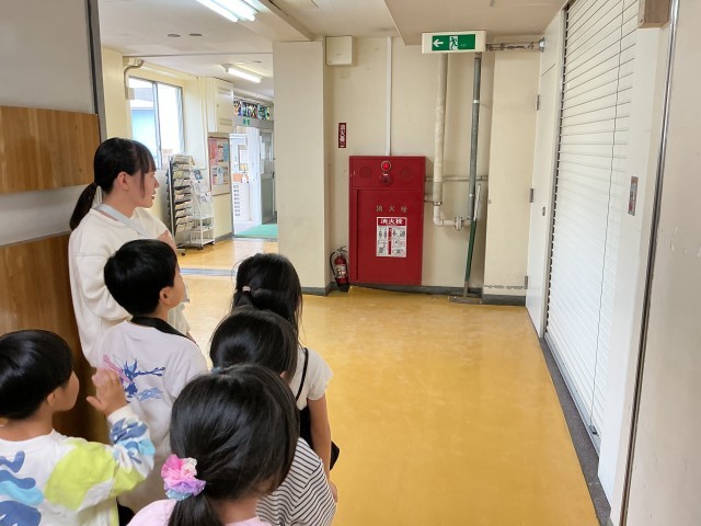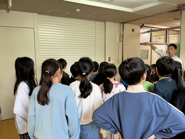 今日は給食室から火事が発生した想定で避難訓練を行いました。ハンカチを口に当てて、静かに校庭へ避難することができました。校長先生の話も静かに聞き、緊張感が感じられました。最後に校舎内の防火シャッターを確認しました。