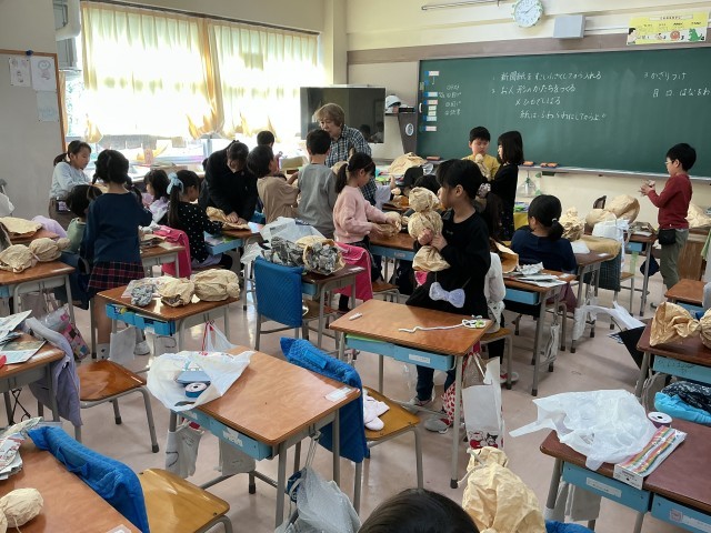 2年生の図工では、展覧会に向けて立体作品を仕上げています。「頭が大きくなっちゃった」と大きさを決めるのに苦労しながら取り組んでいました。どんな「ぎゅっとしたいおともだち」が完成するか楽しみです。