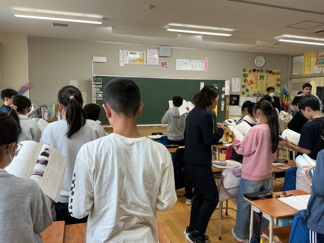 6年生の国語では「やまなし」を読み進めています。今日は、五月と十二月の幻燈を比較して読み取ったことや宮沢賢治の人物像、思いを含め、作者が作品を通して伝えたかったことを考えました。全体で意見を交流し、いろいろな角度から賢治の思いを考えることができました。