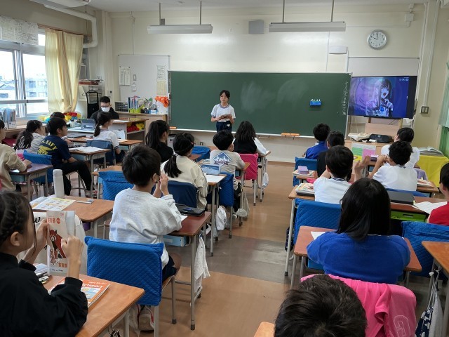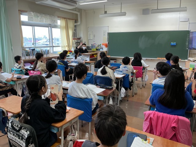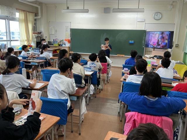 5年生の外国語の学習では、憧れの人について紹介し合いました。サッカー選手や歌手について、一人ずつ英語でスピーチすることができました。とても上手でした。中には、友達を紹介する人もいて教室が温かい空気になりました。