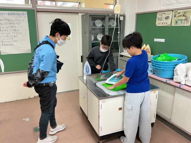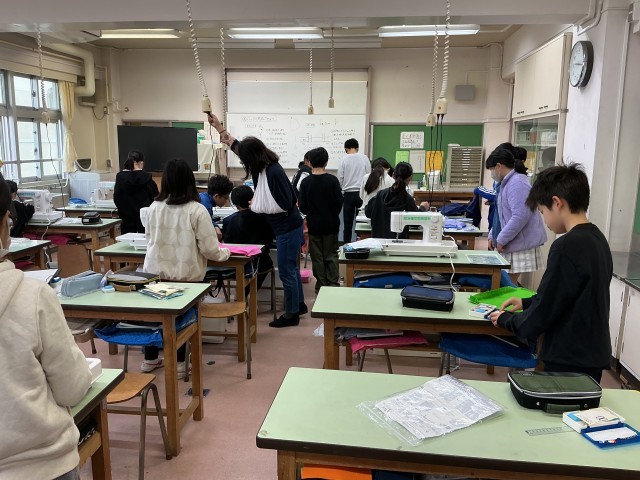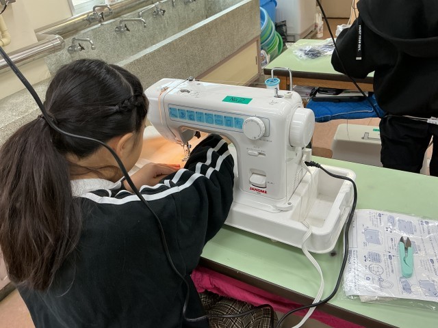 5年生のバッグ作りも進んできました。バッグの脇の部分や持ち手をミシンで縫ったり、アイロンをかけたりして自分の進度に合わせて取り組んでいました。完成が楽しみです。