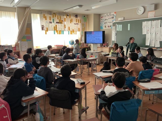 学校公開2時間の様子です。国語や図工、日本語、学級会が新校舎の教室や校庭では行われていました。どのクラスも集中して取り組んでいました。