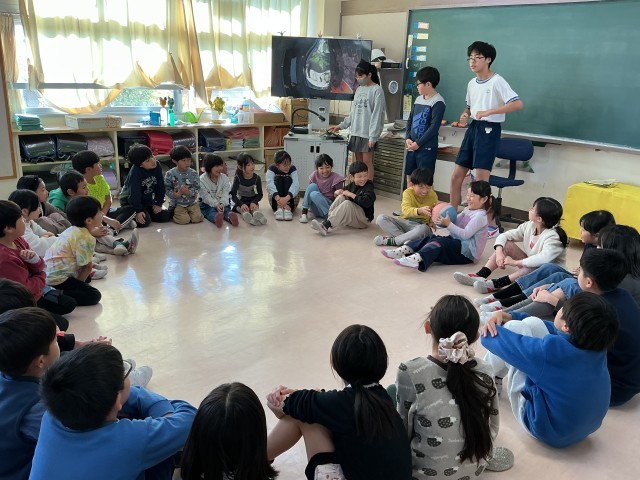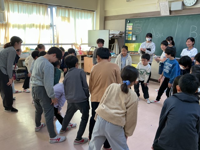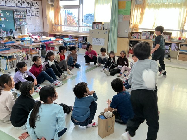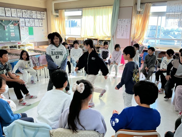 今日は希望っ子班活動がありました。教室を覗いてみると、震源地や爆弾ゲーム、なんでもバスケット、ハンカチ落としなどで楽しく遊んでいました。どの教室からも笑い声が響いています。展覧会もあり慌ただしい中、準備をしてくれた6年生の皆さんありがとうございました。