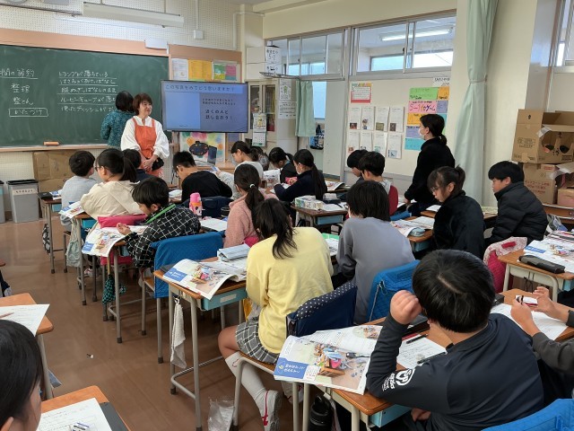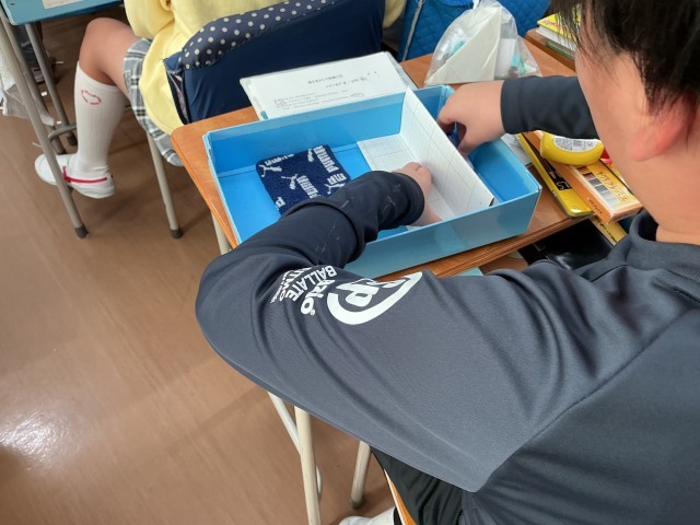 今日の家庭科の学習では、整理収納アドバイサーの方をお招きして整理整頓のよさについて考えました。「何がどこにあるか分かりやすくなる」「地震が起きたときにけがすることがない」「物を探す時間が減る」などたくさんのことに気付きました。