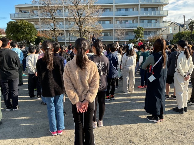 毎週月曜日に全校朝会があります。熱中症対策やトイレ改修工事、感染症の流行などによって、校庭に集まって全校朝会をするのは久しぶりでした。子どもたちは学級の場所に素早く整列して、校長先生や看護当番の先生の話を聞きました。