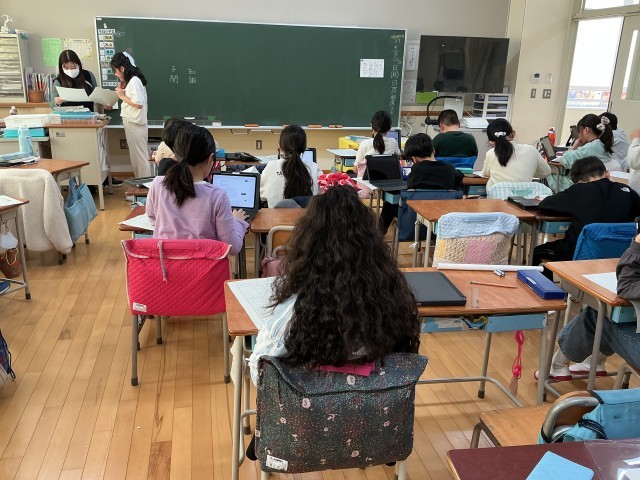 4年生の総合的な学習でデフリンピック観戦に行きました。その時の学びと、調べたことを新聞にまとめる学習をしていました。「まとめていったら5枚になってしまった」と話すほど、どの子も集中して取り組んでいました。